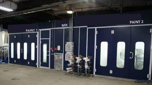 - Most repair facilities are limited with 1 paint room, We have 2 state of the art heated downdraft paint booths that bake new paint in hours rather than days.