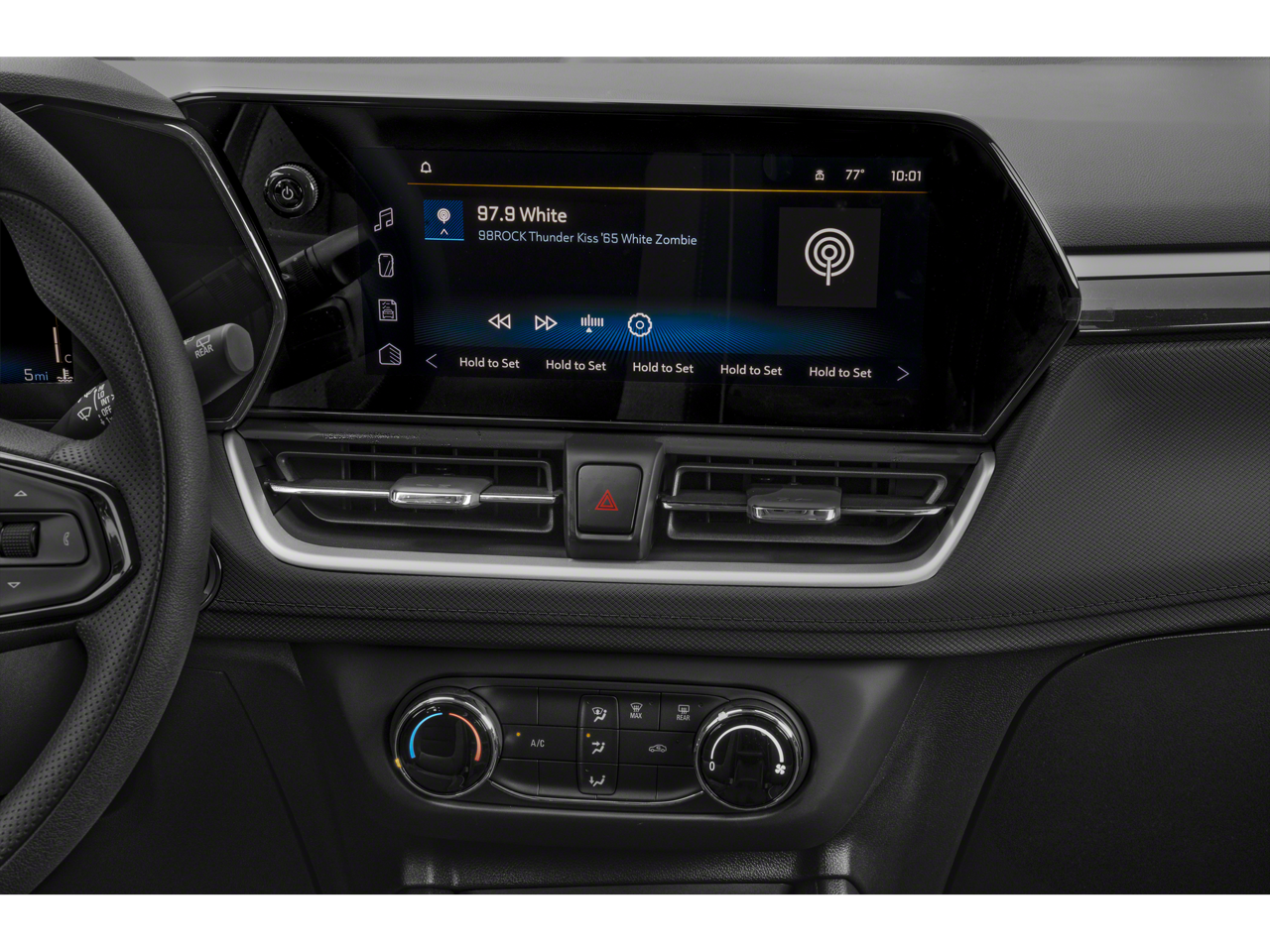 Audio system feature, 4-speaker system (fwd models.)|audio system, 11 diagonal hd color touchscreen, am/fm stereo. additional features for compatible phones include: bluetooth audio streaming for 2 active devices, voice command pass-through to phone, wireless apple carplay and wireless android auto capable|wi-fi hotspot capable (terms and limitations apply. see onstar.com or dealer for details.)|siriusxm trial subscription enjoy a platinum plan trial subscription (important: the siriusxm trial subscription is not provided on vehicles that are ordered for fleet daily rental (fdr) use. trial subscription is subject to the siriusxm customer agreement and privacy policy, visit www.siriusxm.com which includes full terms and how to cancel. all fees, content, features, and availability are subject to change.)|wireless apple carplay/wireless android auto|tires, 225/60r17 all-season, blackwall|windshield, solar absorbing|glass, solar absorbing|headlamps, led|intellibeam, auto high beam control|headlamp control, automatic on and off|liftgate, manual|door handles, body-color|lamp, led center high-mounted stop/brake lamp|tire inflator kit|wheels, 17 (43.2 cm) silver-painted aluminum|shutters, front upper grille, active|fascia, front and rear lower insert, black|ornamentation, trailblazer lettering|moldings, anthracite lower bodyside|wiper, rear intermittent|tail lamps, halogen|mirrors, outside power-adjustable, manual-folding, black|heating ducts, under front seats, rear vent|cruise control, electronic with set and resume speed|seat adjuster, front passenger 4-way manual|seat, rear 40/60 split-bench, folding (60 percent on passenger side)|usb ports, 2 one type-a and one type-c, located within the instrument panel|floor mats, rear (deleted when lpo floor mats/liners are ordered.)|head restraints, front, 2-way adjustable|steering wheel, polyurethane|assist handle, front passenger|air conditioning, single-zone electronic|lighting, rear cargo compartment lamp|seat adjuster, driver 6-way manual|key system, 2 key fobs|theft-deterrent system, electrical, unauthorized entry|steering column, tilt and telescopic|seat trim, cloth|steering wheel controls mounted audio, driver information center, forward collision alert gap adjust and phone interface controls|console, floor, with armrest|air filter, cabin|knee bolster, driver and front passenger|driver information center 8 diagonal display, fully digital color, reconfigurable|map pocket, driver seatback|shift knob, satin silver and chrome|map pocket, front passenger seatback, lateral mesh|lighting, interior, overhead courtesy and dual reading lamp|vehicle health management provides advanced warning of vehicle issues|assist handle, driver|seats, front bucket|assist handle, rear outboard|mirror, inside rearview manual day/night|floor mats, front (deleted when lpo floor mats/liners are ordered.)|visors, driver and front passenger vanity mirrors, covered|lighting, interior, roof, rear courtesy|seatback, front passenger flat-folding|compass display|windows, power with driver express-up/down and front passenger and rear express-down|transmission, continuously variable (cvt) (fwd models.)|drivetrain, front-wheel drive|gvwr, 4189 lbs. (1900 kg) (fwd models with (lbp) 1.2l turbo engine.)|engine, ecotec 1.2l i3 turbo dohc di with variable valve timing (vvt), e85-compatible (137 hp [102 kw]