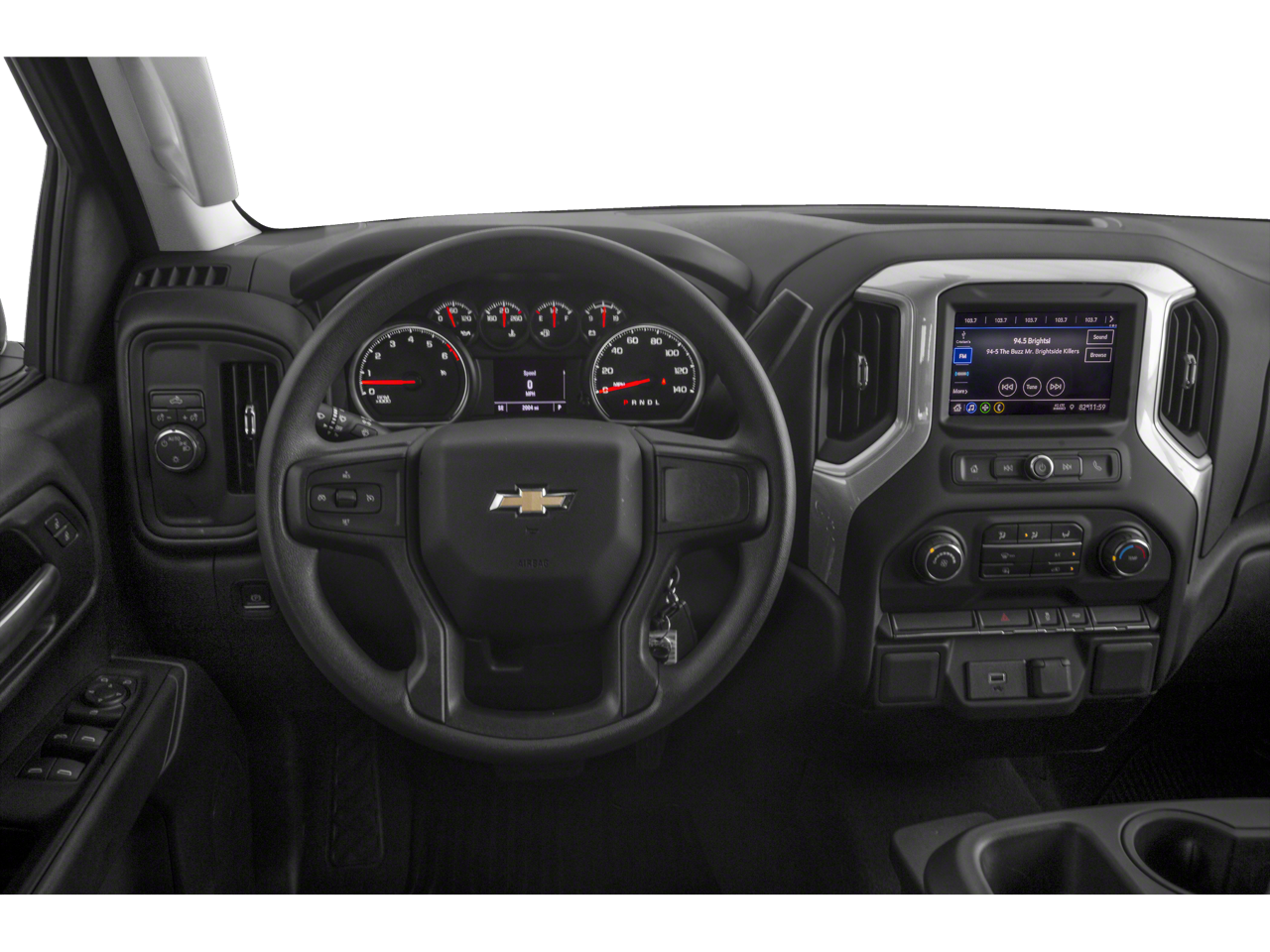 Usb port, located on instrument panel|bluetooth for phone, connectivity to vehicle infotainment system|audio system feature, 6-speaker system|audio system, chevrolet infotainment 3 system 7 diagonal color touchscreen, am/fm stereo. additional features for compatible phones include: bluetooth audio streaming for 2 active devices, voice command pass-through to phone, apple carplay and android auto capable.|mirrors, outside heated power-adjustable|grille (body color bars with black mesh inserts.)|recovery hooks, front, frame-mounted, black|taillamps, led with signature|tire carrier lock, keyed cylinder lock that utilizes same key as ignition and door|tires, 275/60r20 all-season, blackwall|cargo tie downs (12), fixed rated at 500 lbs per corner|bumper, front (body-color.)|tailgate, locking utilizes same key as ignition and door (upgraded to (qt5) ez lift power lock and release tailgate when (pcx) custom convenience package is ordered.)|cornerstep, rear bumper|lamps, cargo area, cab mounted integrated with center high mount stop lamp, with switch in bank on left side of steering wheel|tire, spare 255/80r17sl all-season, blackwall|bumper, rear (body-color.)|wheels, 20 x 9 (50.8 cm x 22.9 cm) silver painted aluminum|glass, deep-tinted|tailgate and bed rail protection cap, top|headlamps, halogen reflector with halogen daytime running lamps|door handles, black|lpo, polished exhaust tip (dealer-installed) (standard with 4.3l ecotec3 v6 engine. not available with (l82) 5.3l ecotec3 v8 engine.)|tailgate, gate function manual, no lift assist|seat, rear 60/40 folding bench (folds up), 3-passenger (includes child seat top tether anchor)|instrument cluster, 6-gauge cluster featuring speedometer, fuel level, engine temperature, tachometer, voltage and oil pressure|seat trim, cloth|rear seat reminder|floor mats, rubberized vinyl rear (deleted when lpo floor liners are ordered.)|assist handles front a-pillar mounted for driver and passenger, rear b-pillar mounted|air conditioning, single-zone|steering wheel, urethane|seat adjuster, passenger 4-way manual|remote keyless entry, with 2 transmitters|mirror, inside rearview, manual tilt|driver information center, 3.5 diagonal monochromatic display|door locks, power|window, power front, passenger express down|window, power front, drivers express up/down|air vents, rear, heating/cooling|seats, front 40/20/40 split-bench|cruise control, electronic with set and resume speed, steering wheel-mounted|steering column, tilt-wheel, manual with wheel locking security feature|windows, power rear, express down|floor covering, color-keyed carpeting|exterior temperature display located in radio display|power outlet, front auxiliary, 12-volt|seat adjuster, driver 4-way manual|floor mats, rubberized vinyl, front (deleted when lpo floor liners are ordered.)|four wheel drive|engine, 4.3l ecotec3 v6 (285 hp [212 kw]