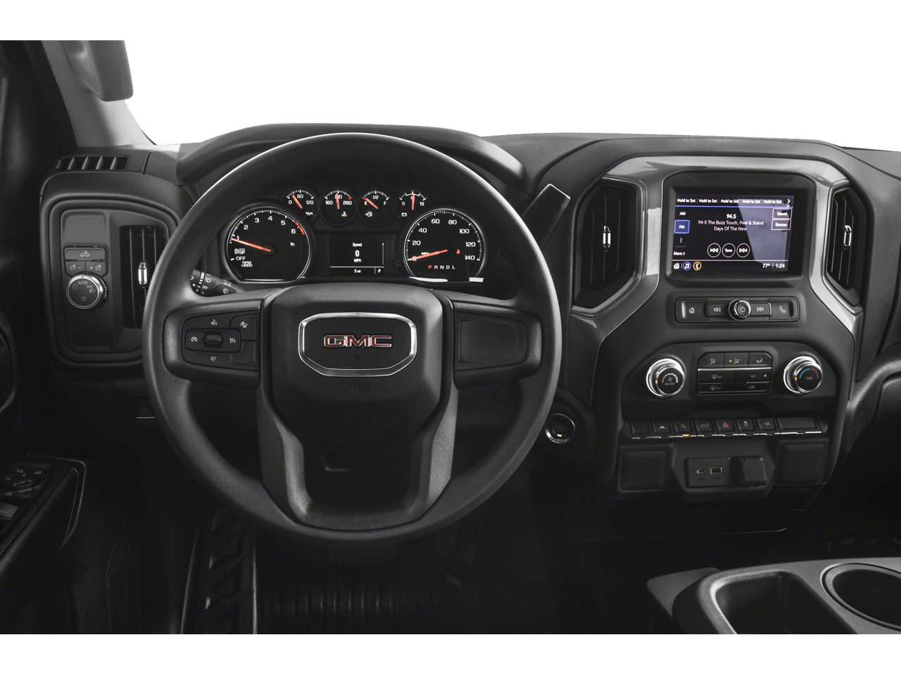 Audio system feature, 6-speaker system (requires crew cab or double cab model.)|bluetooth for phone connectivity to vehicle infotainment system|audio system, gmc infotainment system with 7 diagonal color touch-screen, am/fm stereo with seek-and-scan and digital clock, includes bluetooth streaming audio for music and select phones; featuring wired android auto and apple carplay capability for compatible phones|wheels, 17 x 8 (43.2 cm x 20.3 cm) painted steel, silver|mirrors, outside manual, black (not available on regular cab models.)|bumper, front chrome lower (requires (vjh) rear chrome bumper and (e63) pickup bed. required with (ud7) rear park assist or (pqa) 1sa safety plus package on 1sa unless ordered with (wbp) graphite edition.)|headlamps, led projectors with fade-on/fade-off animation, led turn signals and daytime running lamps|tire, spare 255/70r17 all-season, blackwall (included with (qbn) 255/70r17 all-season, blackwall tires.)|tailgate, gate function manual, no lift assist (deleted with (zw9) pickup bed delete or (qk2) gmc multipro tailgate.)|bumper, rear chrome with bumper cornersteps (requires (v46) front chrome bumper and (e63) pickup bed.)|cornerstep, rear bumper|wheel, 17 x 8 (43.2 cm x 20.3 cm) full-size, steel spare|tires, 255/70r17 all-season, blackwall|tailgate and bed rail protection caps, top|lamps, cargo area, cab mounted integrated with center high mount stop lamp, with switch in bank on left side of steering wheel|intellibeam, automatic high beam on/off (included and only available with (pdi) gmc pro safety.)|grille (chrome header with flat black grille insert bars)|tailgate, standard (deleted with (zw9) pickup bed delete.)|tailgate, locking utilizes same key as ignition and door (deleted with (zw9) pickup bed delete or (qk2) gmc multipro tailgate.)|taillamps, led led signature taillight and fade-on/fade-off animation, incandescent stop, turn and reverse light|tire carrier lock keyed cylinder lock that utilizes same key as ignition and door (deleted with (zw9) pickup bed delete.)|glass, solar absorbing, tinted|door handles, black grained|seat adjuster, driver 4-way manual|driver information center, 3.5 diagonal monochromatic display|air vents, rear (not available with regular cab model.)|mirror, inside rearview, manual tilt|window, power front, passenger express down|windows, power rear, express down (not available on regular cab models.)|usb ports, 2, charge/data ports located on instrument panel|seat, rear 60/40 folding bench (folds up), 3-passenger (includes child seat top tether anchor) (not available with regular cab model.)|assist handles front a-pillar mounted for driver and passenger, rear b-pillar mounted|seat trim, vinyl|windows, power front, drivers express up/down|steering wheel, urethane|instrument cluster, 6-gauge cluster featuring speedometer, fuel level, engine temperature, tachometer, voltage and oil pressure|air conditioning, single-zone manual|remote keyless entry|floor covering, rubberized-vinyl (not available with lpo floor liners.)|door locks, power|seats, front 40/20/40 split-bench with covered armrest storage and under-seat storage (lockable)|seat adjuster, passenger 4-way manual|steering column, tilt-wheel, manual with wheel locking security feature|brake lining wear indicator|power outlet, front auxiliary, 12-volt|exterior temperature display, located in radio display|suspension package, standard|recovery hooks, front, frame-mounted, black (included with 4wd models or included and only available on 2wd models with (pqa) 1sa safety plus package or (wpb) graphite edition. available on 2wd models as an seo option.) (included with 4wd models or included on 2wd models with (pqa) 1sa safety plus package or (wpb) graphite edition. available on 2wd models as a free flow option.)|push button start|four wheel drive|transmission, 8-speed automatic, (column shifter) electronically controlled with overdrive and tow/haul mode. includes cruise grade braking and powertrain grade braking (standard and only available with (l3b) 2.7l turbo high-output engine.)|battery, heavy-duty 730 cold-cranking amps/80 amp-hr, maintenance-free with rundown protection and retained accessory power (included and only available with (l84) 5.3l ecotec3 v8 engine or (l3b) 2.7l turbo high-output engine.)|rear axle, 3.42 ratio (included and only available with (l3b) 2.7l turbo high-output engine.)|cargo tie downs (12), fixed|gvwr, 7000 lbs. (3175 kg) (requires crew cab or double cab 4wd model and (l3b) 2.7l turbo high-output engine. requires double cab 4wd model and (l84) 5.3l ecotec3 v8 engine.)|pickup bed (deleted when (zw9) pickup bed delete is ordered on regular cab models.)|brakes, 4-wheel antilock, 4-wheel disc with duralife rotors|capless fuel fill|frame, fully-boxed, hydroformed front section|transfer case, single speed, electronic autotrac with push button control (4wd models only)|exhaust, aluminized stainless-steel muffler and tailpipe|steering, electric power steering (eps) assist, rack-and-pinion|engine, 2.7l turbo high-output (310 hp [231 kw]